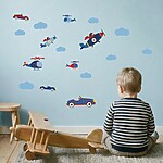 Die Sticker beinhalten 2 Propellerflugzeuge, 3 Autos, 3 Hubschrauber und 11 Wolken. Die größten Motive sind ca. 20 cm lang.